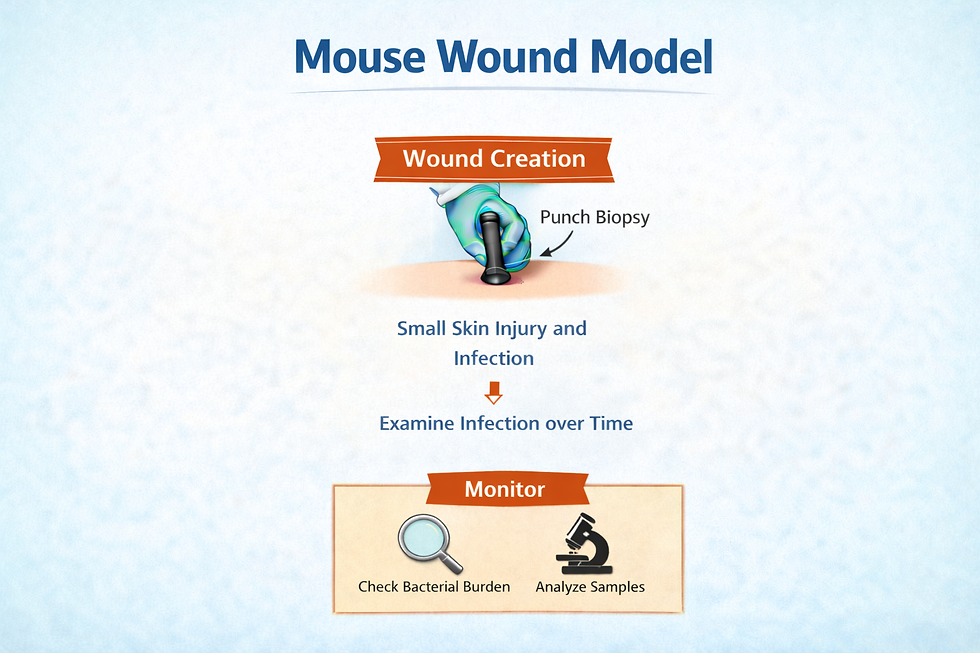 Mouse wound infection model showing a circular punch‑biopsy wound used to study how bacterial infections progress over time. Researchers tracked how E. faecalis persists in these wounds and how immune responses change during infection. (Photo: SMART AMR)